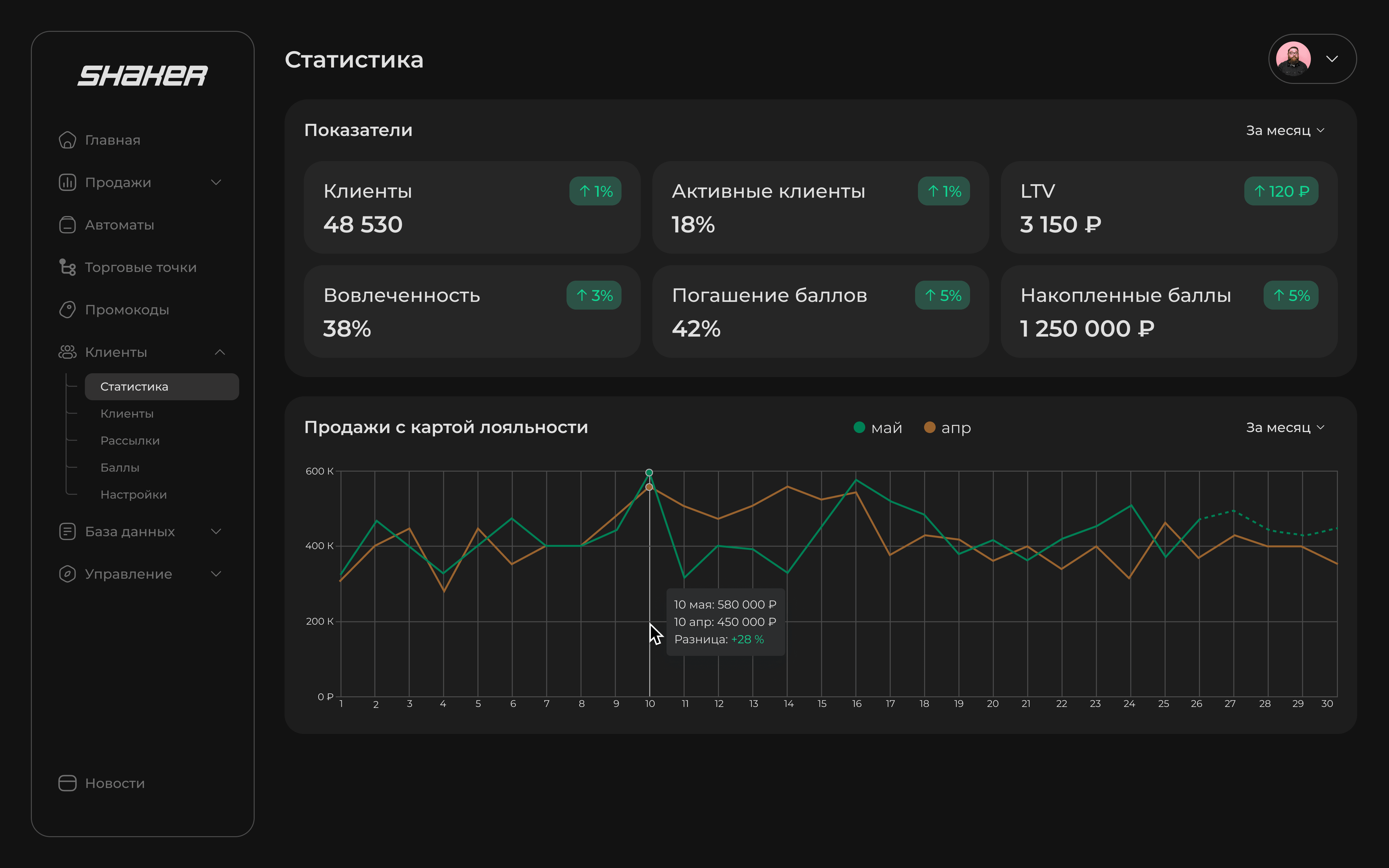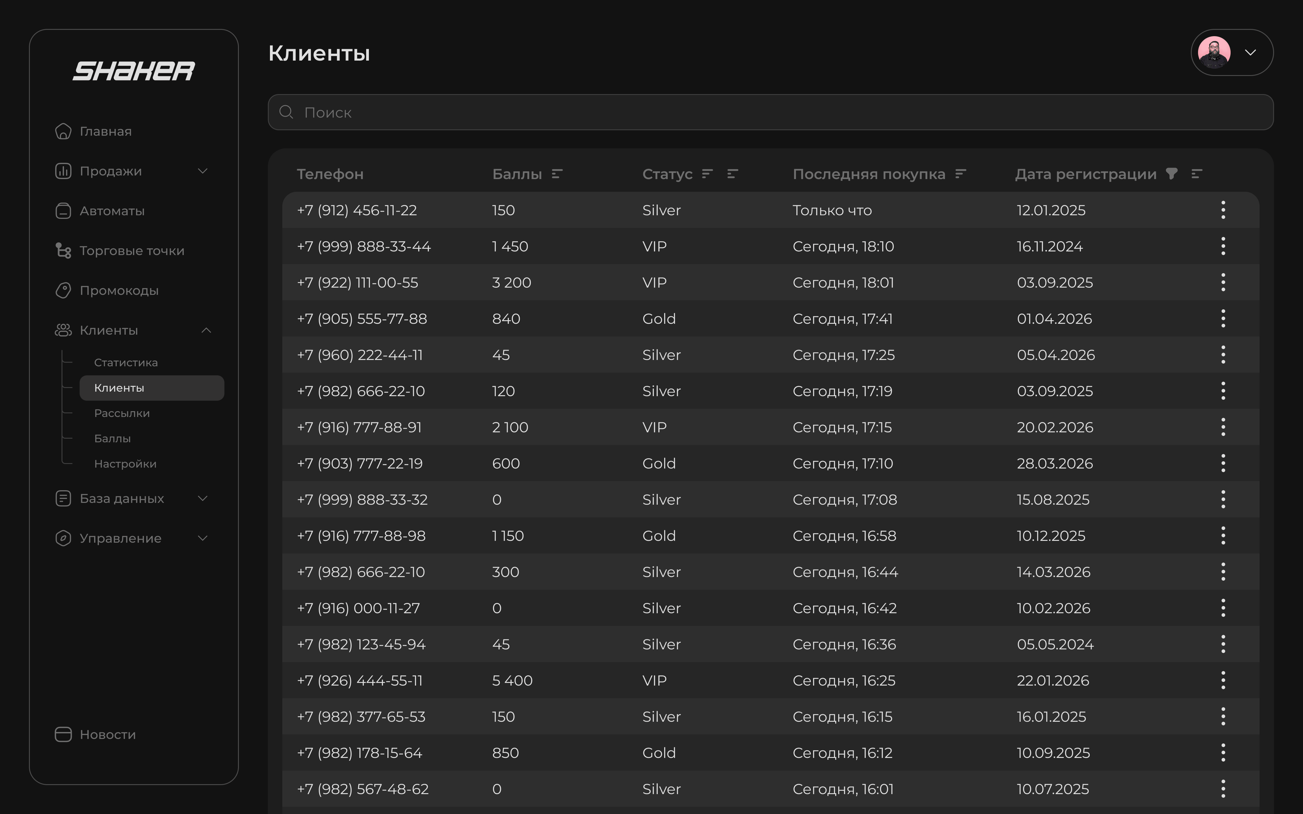 CRM для удержания аудитории. Помогает сегментировать базу, запускать точечные промо-кампании и контролировать экономику баллов без кассовых разрывов.