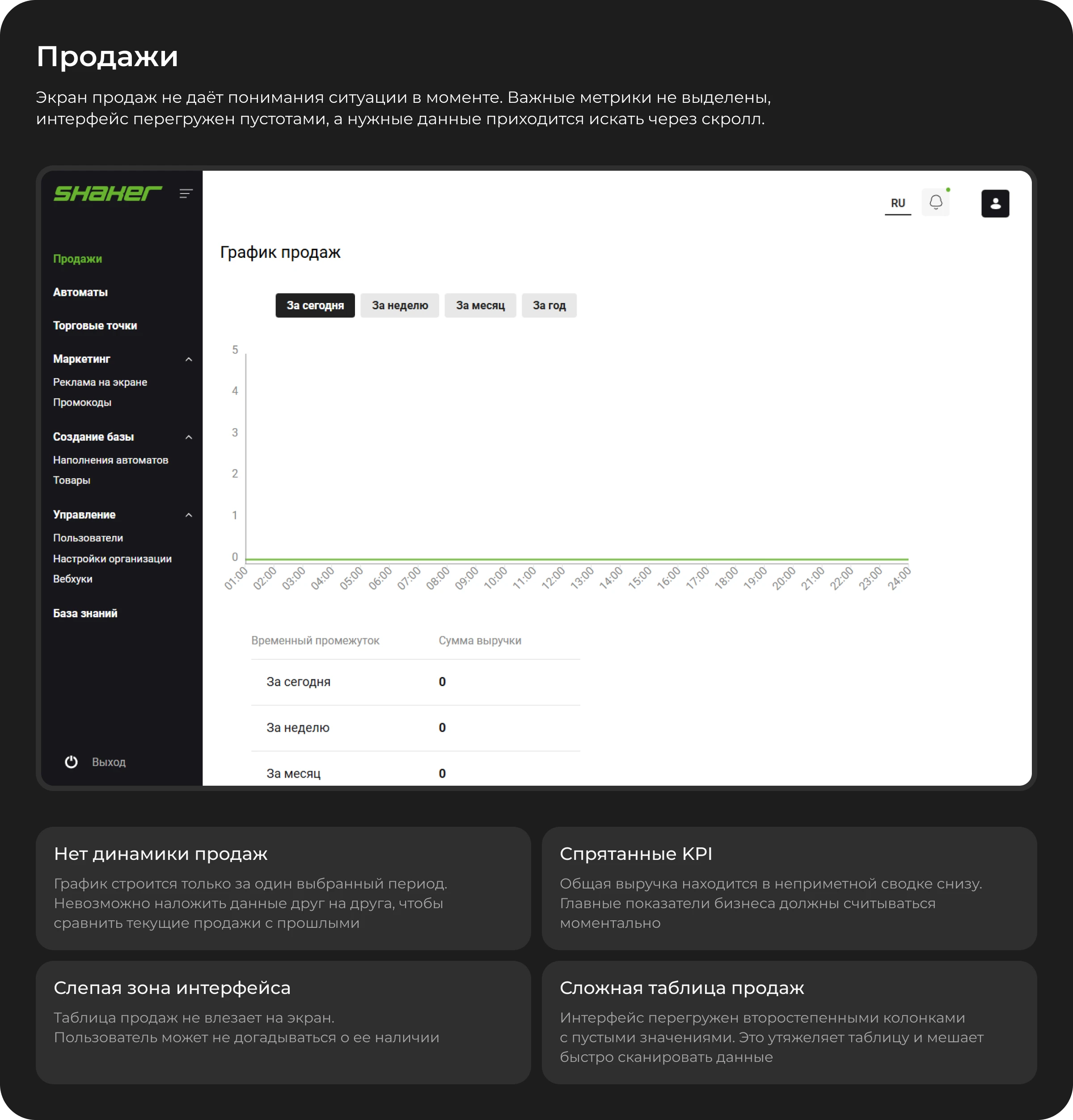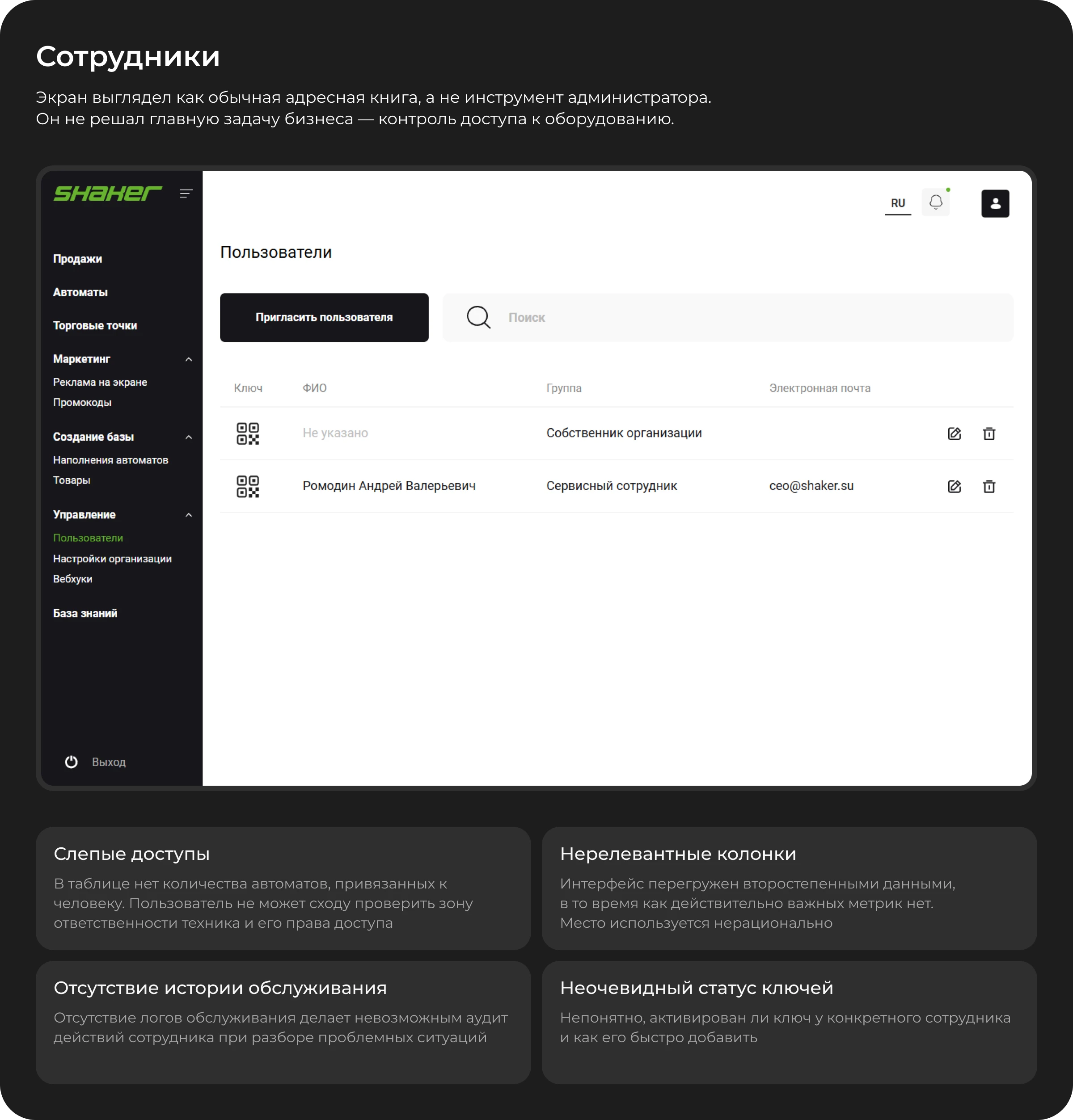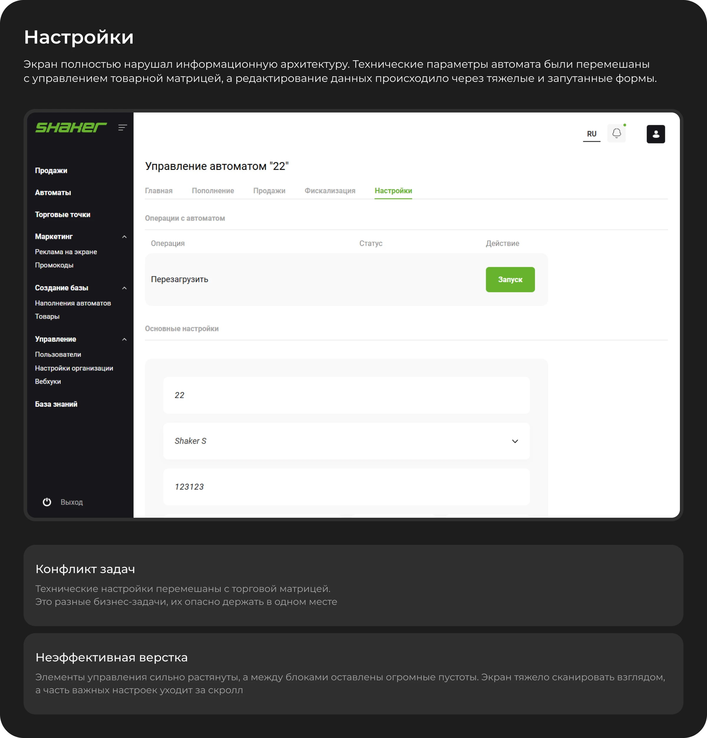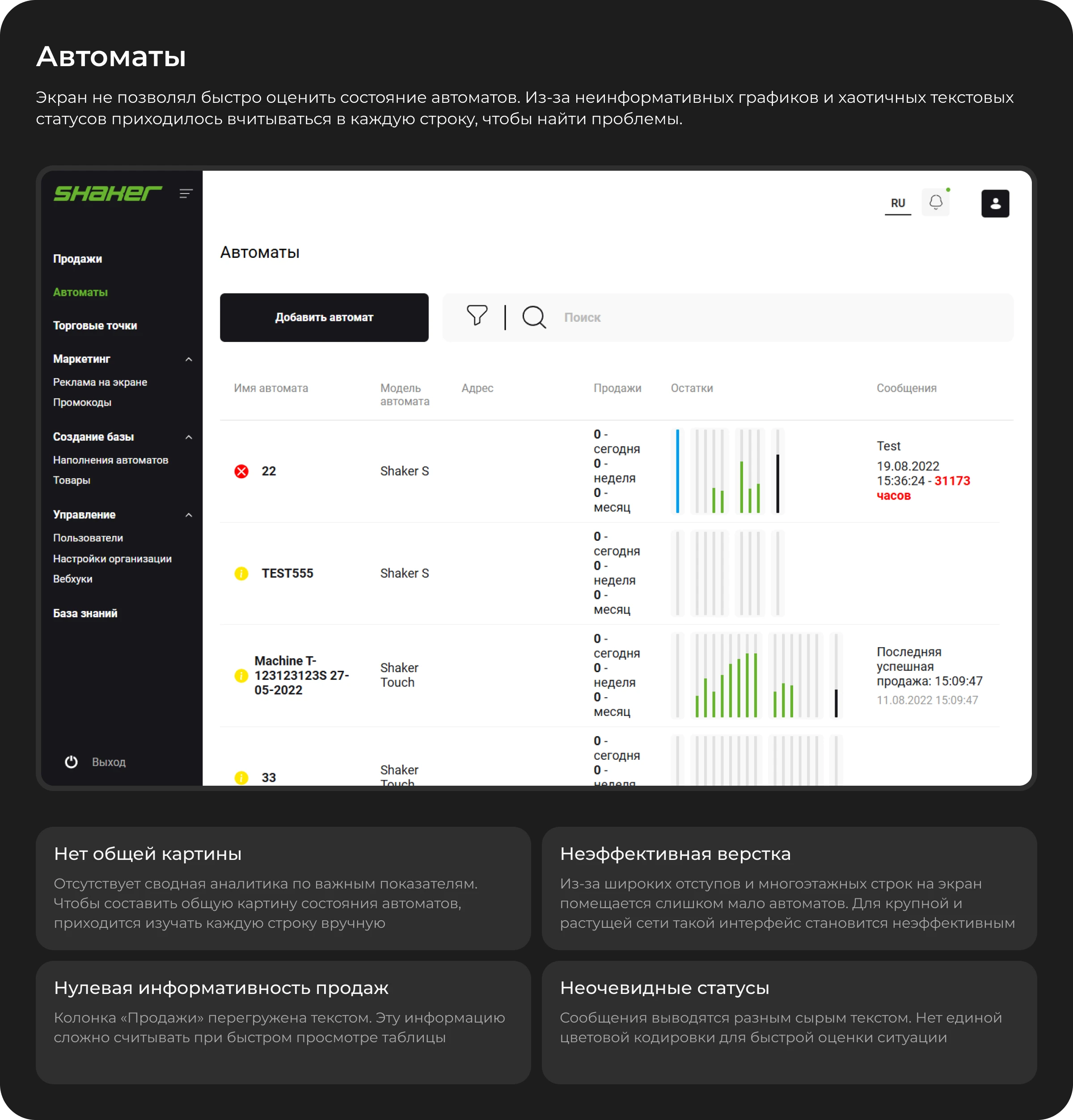 Shaker — производитель вендингового оборудования. В 2023 году компания начала стратегический пивот: переход от штучных продаж автоматов к сделкам с Enterprise-клиентами и построению сетей от 50 до 100+ аппаратов