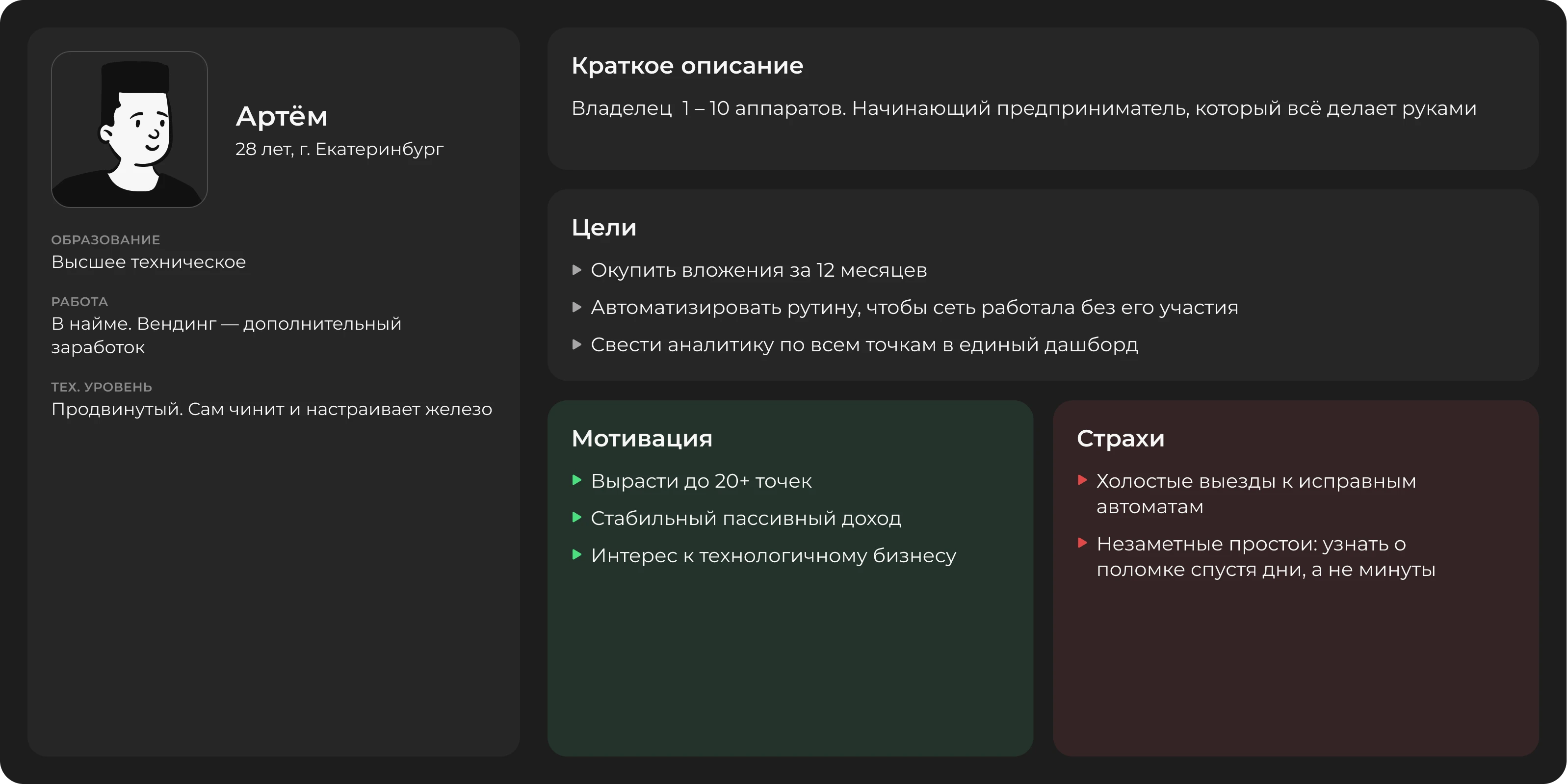Дать клиентам дашборд с мониторингом 24/7. Связать телеметрию с «Вендистой» (эквайринг) и «МоимСкладом» (учет товаров), а сервисные алерты выводить в Telegram для моментальной реакции техников