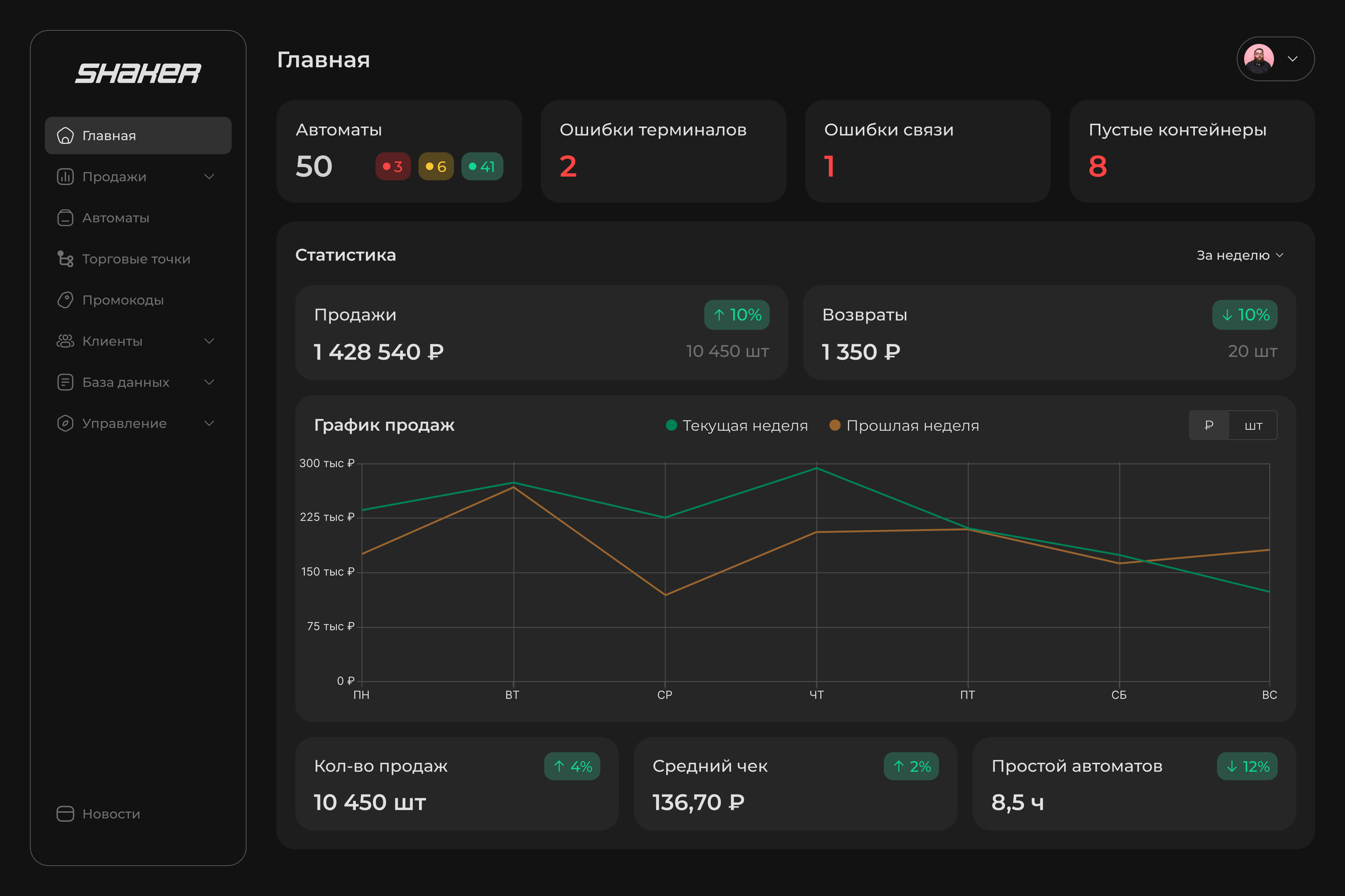 Раньше владельцам приходилось сводить отчеты вручную, сверяя данные телеметрии с банковскими выписками. Интеграция с API эквайринга объединила управление оборудованием и финансами: теперь вся экономика сети доступна в едином интерфейсе.